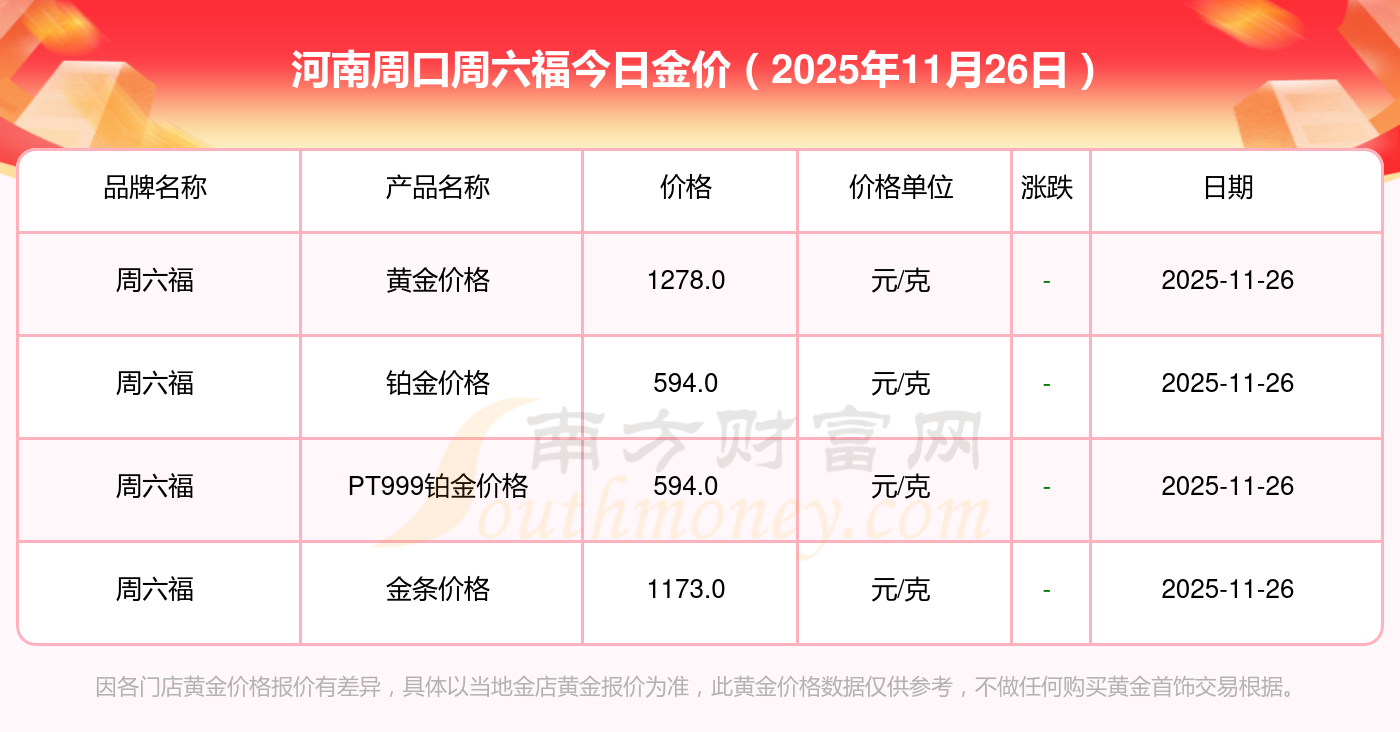 2025年11月26日河南周口周六,F(xiàn)在黃金一克要多少錢:金條金價(內(nèi)地)1155.0元/克,黃金價格1312.0元/克,鉑金價格624.0元/克,黃金價格1312.0元/克,鉑金價格624.0元/克,黃金價格1315.0元/克,鉑金價格600.0元/克,黃金價格1258.0元/克,鉑金價格368.0元/克,黃金價格1149.0元/克,鉑金價格489.0元/克。
