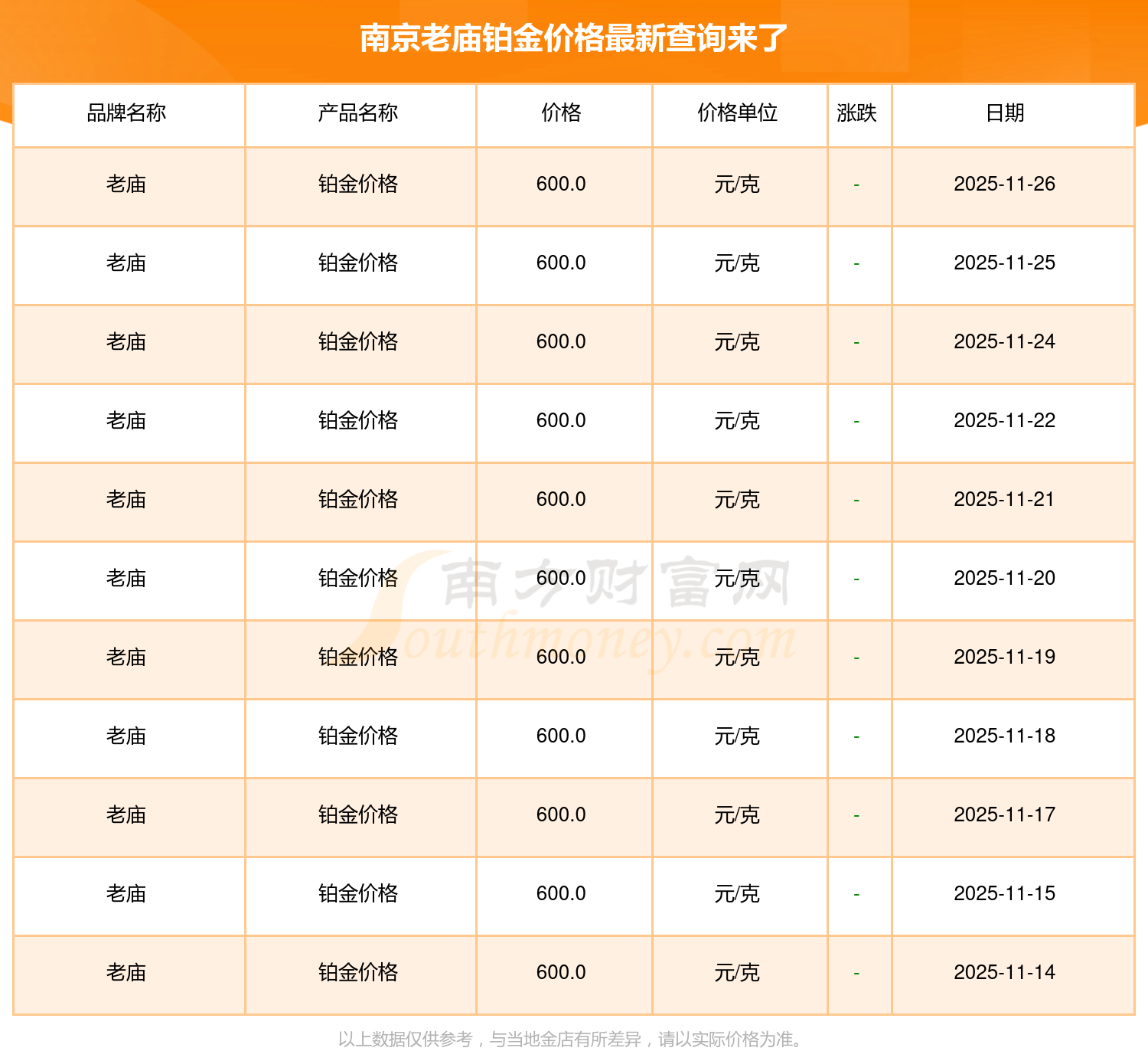 2025年11月26日,周生生、潮宏基、潮宏基、周大生、周大生、亞一金店、亞一金店、寶慶銀樓、寶慶銀樓、太陽金店、太陽金店等各大金店品牌鉑金價格今日價格如下:周生生1155.0元/克、潮宏基1312.0元/克、潮宏基624.0元/克、周大生1312.0元/克、周大生624.0元/克、亞一金店1315.0元/克、亞一金店600.0元/克、寶慶銀樓1258.0元/克、寶慶銀樓368.0元/克、太陽金店1149.0元/克、太陽金店489.0元/克。