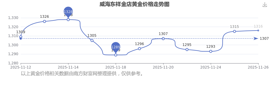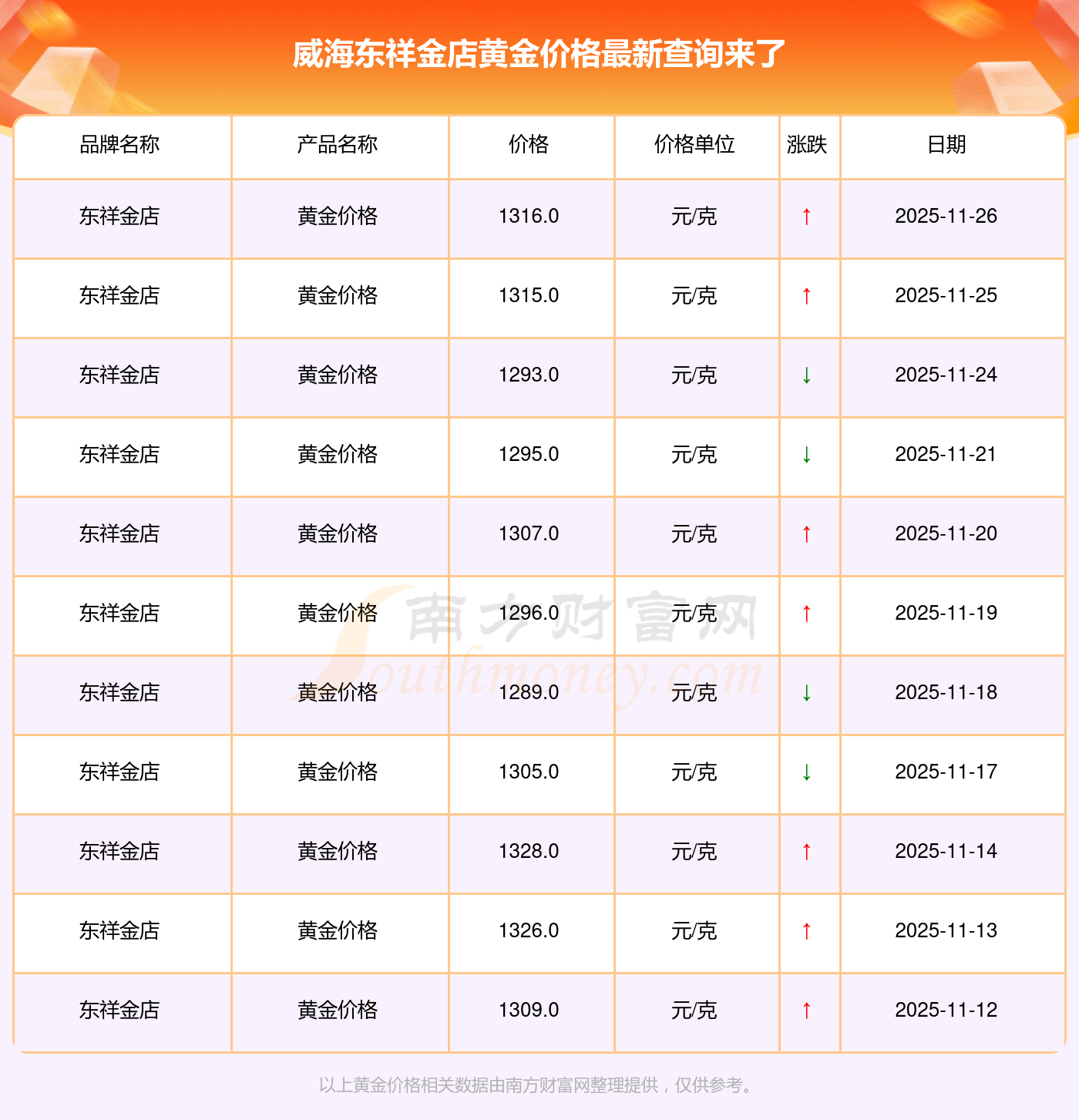 1316.0元/克,此乃威海東祥金店于 2025年11月26日黃金價(jià)格的掛牌價(jià)格。