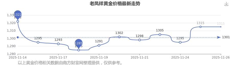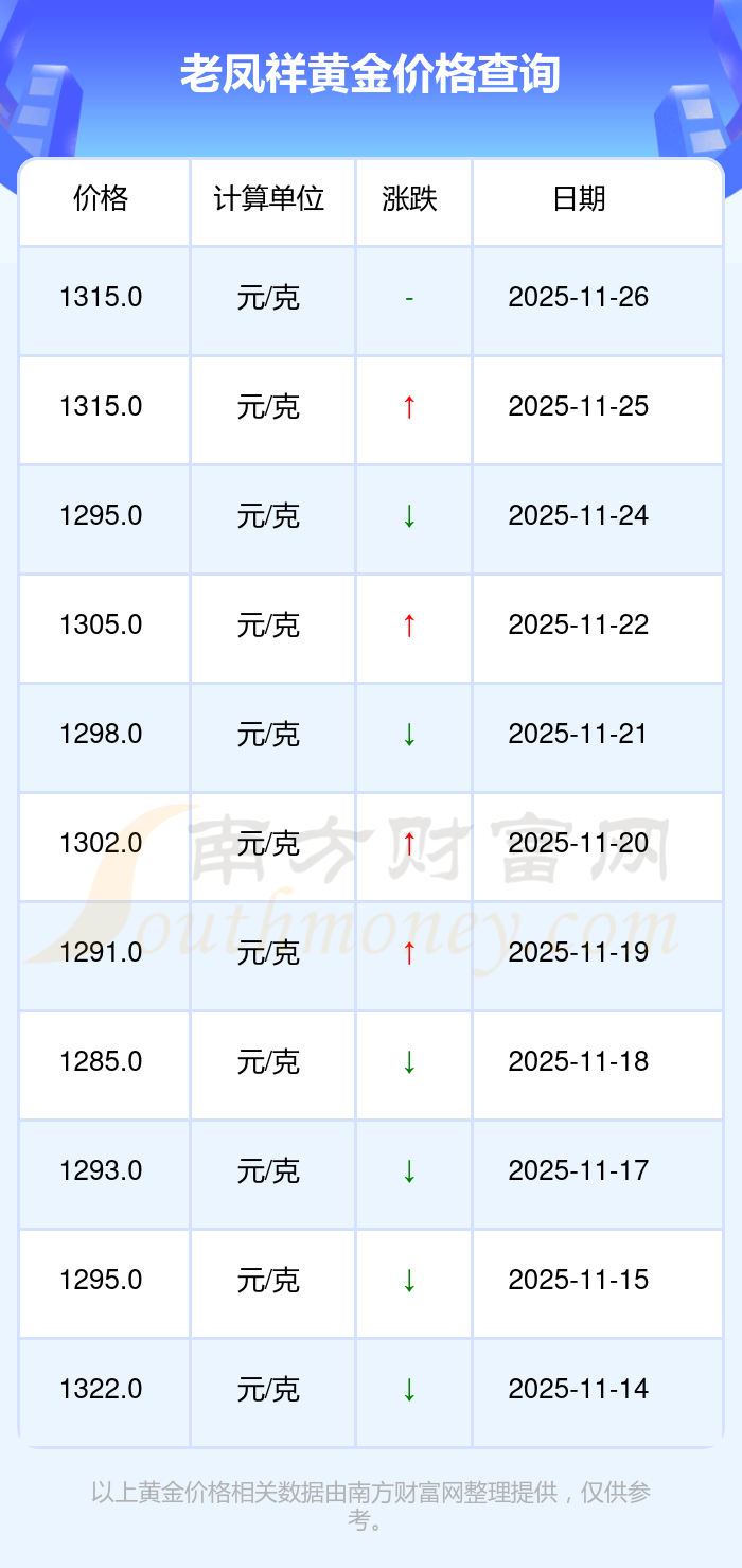 當下,老鳳祥 黃金價格今日的最新價格是1315.0元/克。