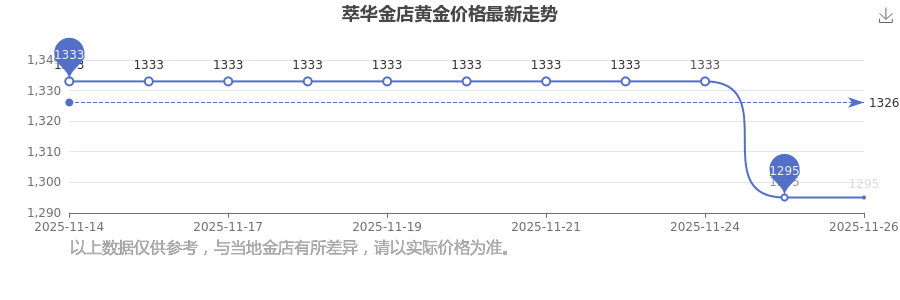 今日(2025年11月26日),萃華金店黃金價格:1295.0元/克。