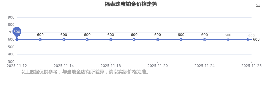 福泰珠寶今日鉑金價格的最新市場行情價為600.0元/克。
