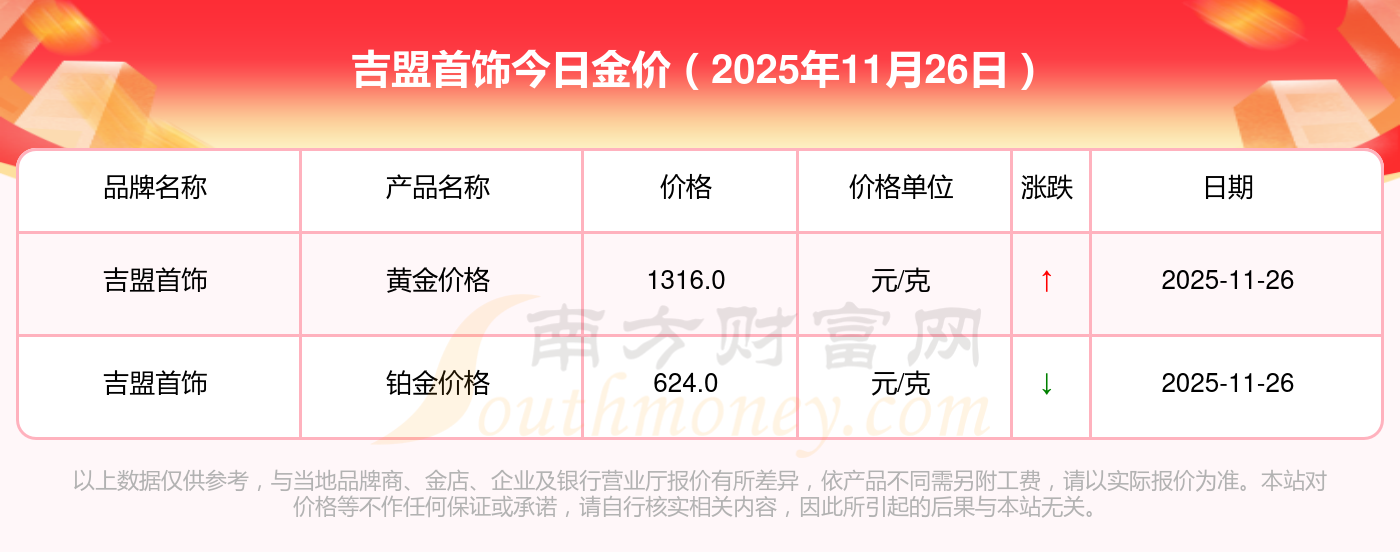今天是2025年11月26日,周生生、潮宏基、潮宏基、周大生、周大生、亞一金店、亞一金店、寶慶銀樓、寶慶銀樓、太陽金店、太陽金店等各大金店品牌黃金價格最新價格如下:周生生1155.0元/克、潮宏基1312.0元/克、潮宏基624.0元/克、周大生1312.0元/克、周大生624.0元/克、亞一金店1315.0元/克、亞一金店600.0元/克、寶慶銀樓1258.0元/克、寶慶銀樓368.0元/克、太陽金店1149.0元/克、太陽金店489.0元/克。