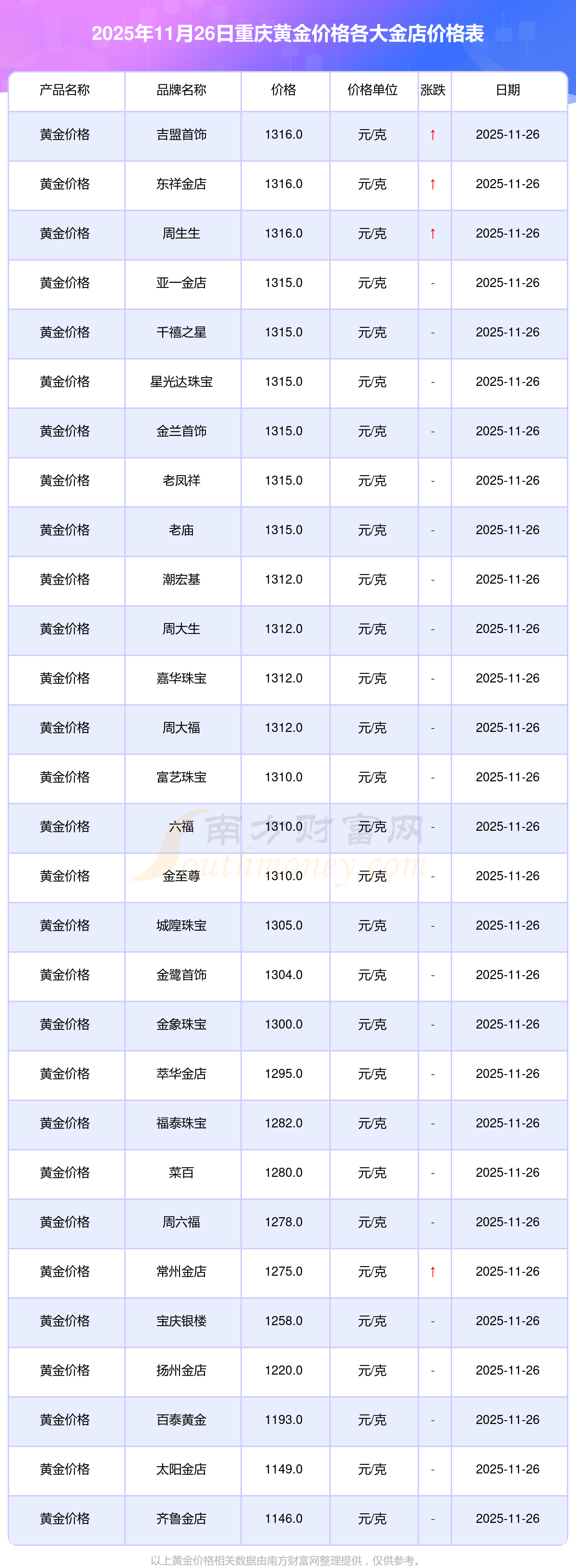 2025年11月26日今日重慶各金店黃金價(jià)格多少錢一克?