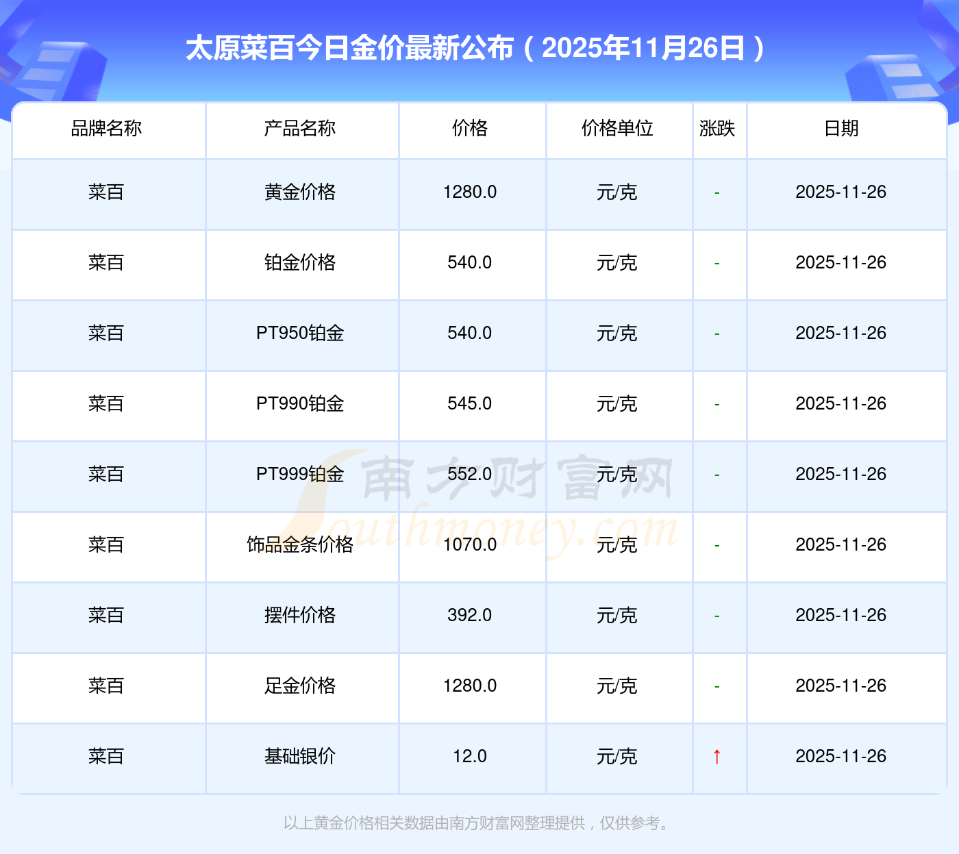 太原菜百金價今日價格最新_太原菜百黃金多少錢一克2025年11月26日,隨小編來了解一下詳情。