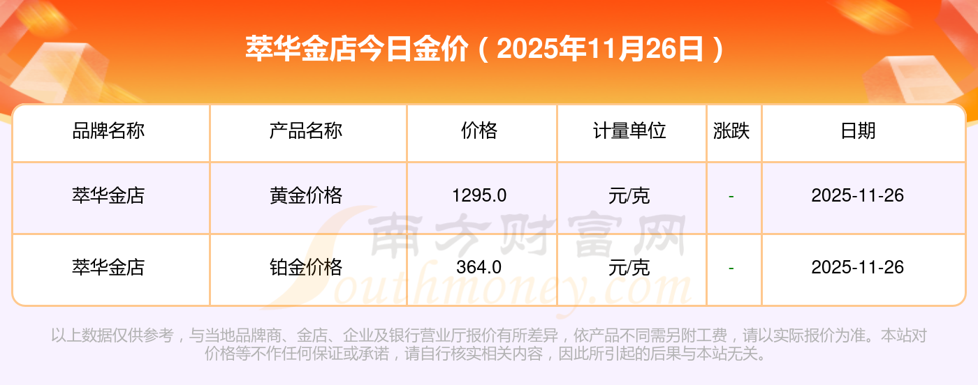 2025年11月26日,周生生、潮宏基、潮宏基、周大生、周大生、亞一金店、亞一金店、寶慶銀樓、寶慶銀樓、太陽金店、太陽金店等各大金店品牌鉑金價格今日價格如下:周生生1155.0元/克、潮宏基1312.0元/克、潮宏基624.0元/克、周大生1312.0元/克、周大生624.0元/克、亞一金店1315.0元/克、亞一金店600.0元/克、寶慶銀樓1258.0元/克、寶慶銀樓368.0元/克、太陽金店1149.0元/克、太陽金店489.0元/克。