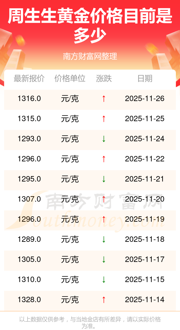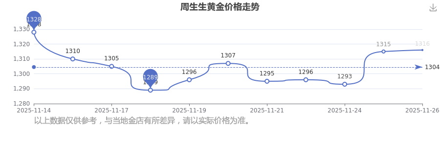 今日周生生所公布的 黃金價格最新價格為1316.0元/克。