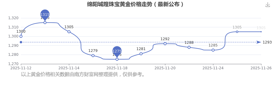 今日綿陽(yáng)城隍珠寶黃金價(jià)格的價(jià)格為1305.0元/克。