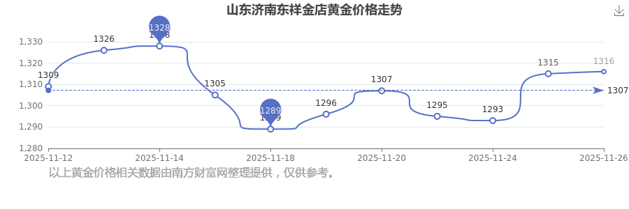 山東濟(jì)南東祥金店現(xiàn)在黃金價(jià)格每克多少?現(xiàn)在買一克黃金得花多少錢?今日山東濟(jì)南東祥金店黃金價(jià)格查詢,山東濟(jì)南東祥金店黃金價(jià)格在 2025年11月26日為 1316.0元/克。