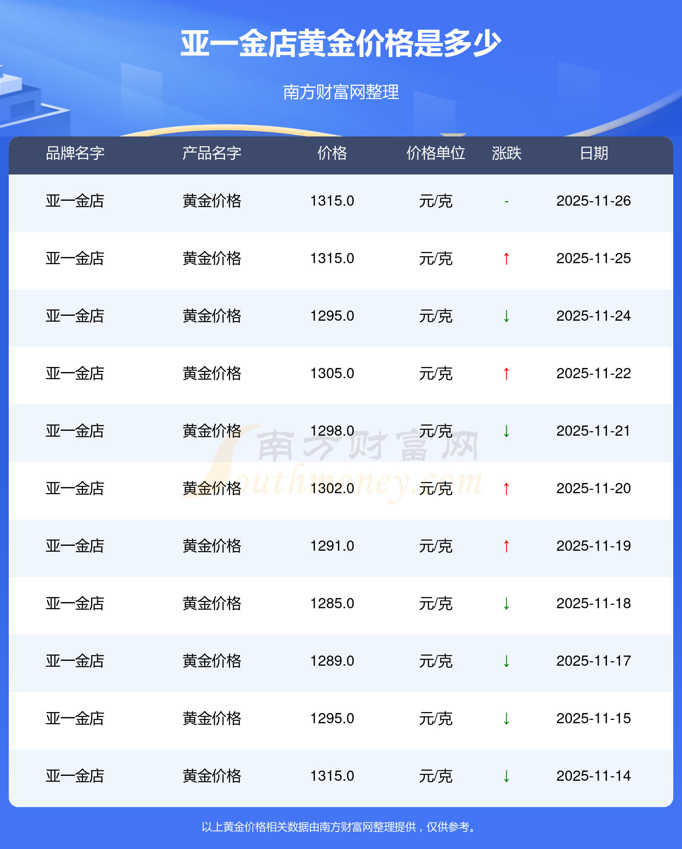 2025年11月26日亞一金店今日黃金價格查詢(黃金價格今日多少一克),一起來看看吧!