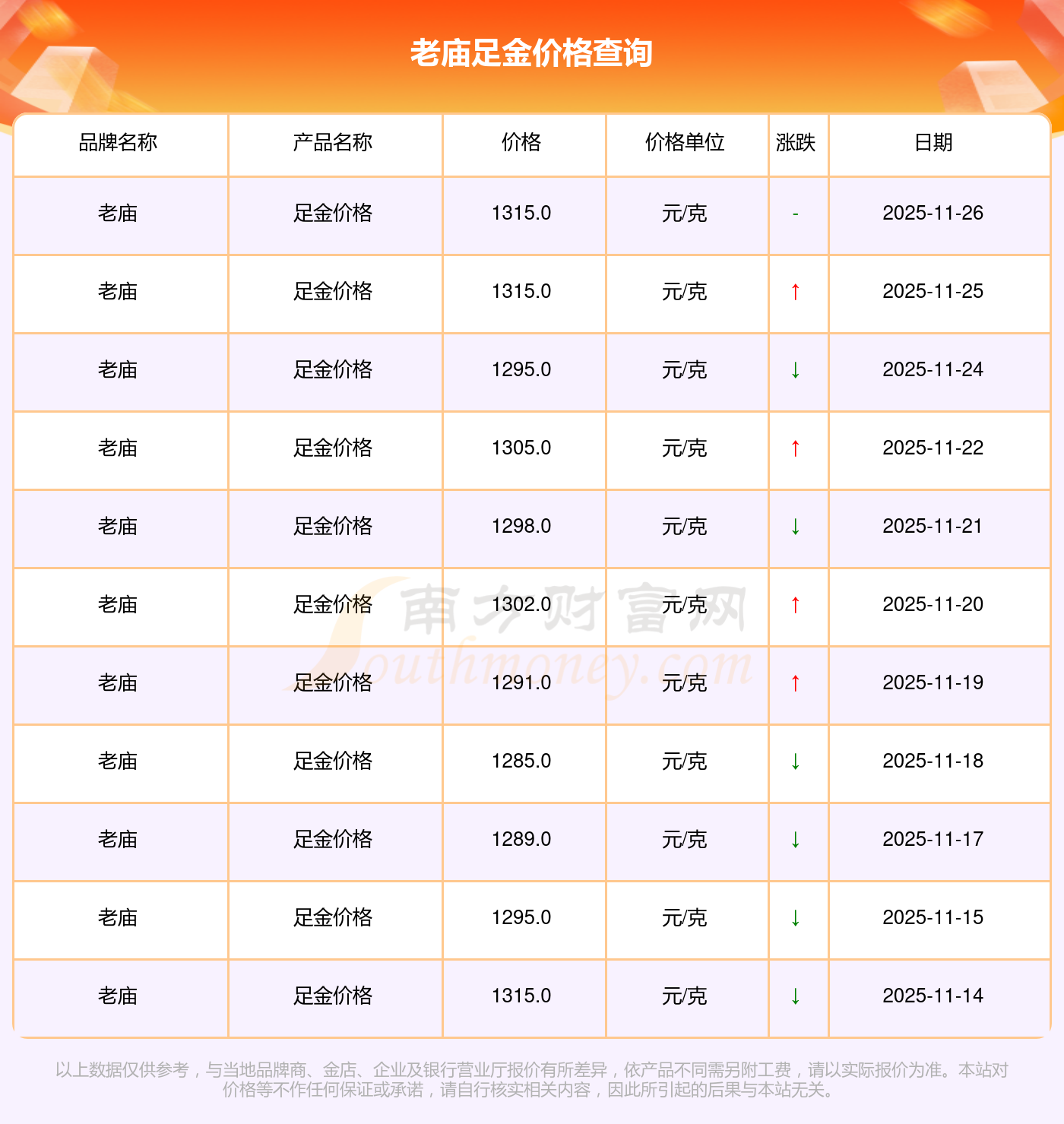 2025年11月26日老廟足金價格現(xiàn)在一克多少錢? 老廟足金價格最新查詢,一起來看看吧!