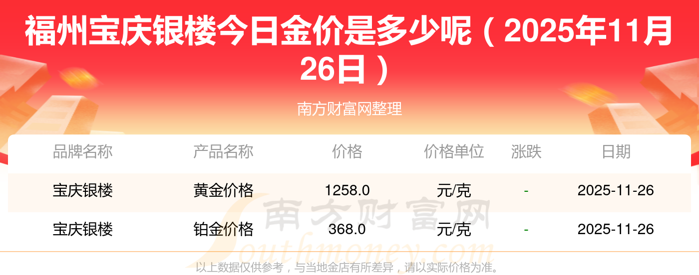 今天黃金價(jià)位是多少?現(xiàn)在一克黃金的價(jià)格是多少呀?2025年11月26日福州寶慶銀樓黃金按克計(jì)價(jià),現(xiàn)在多少錢一克?金條金價(jià)(內(nèi)地)1155.0元/克,黃金價(jià)格1312.0元/克,鉑金價(jià)格624.0元/克,黃金價(jià)格1312.0元/克,鉑金價(jià)格624.0元/克,黃金價(jià)格1315.0元/克,鉑金價(jià)格600.0元/克,黃金價(jià)格1258.0元/克,鉑金價(jià)格368.0元/克,黃金價(jià)格1149.0元/克,鉑金價(jià)格489.0元/克。