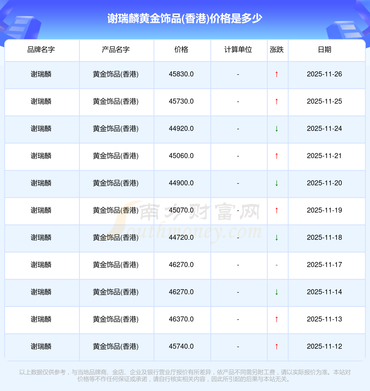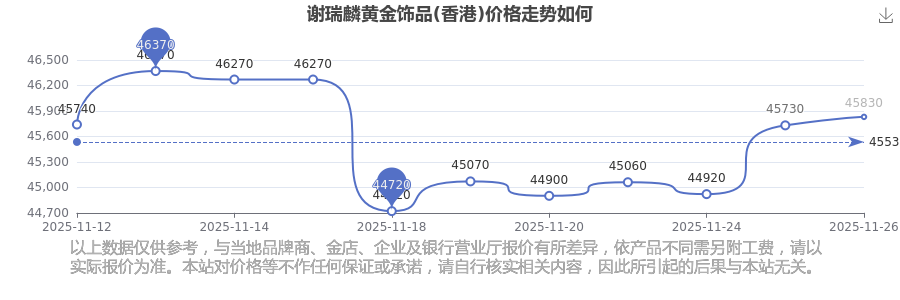 今日謝瑞麟 黃金飾品(香港)價(jià)格,最新確定為45830.0。