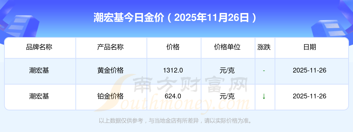 2025年11月26日,周生生、潮宏基、潮宏基、周大生、周大生、亞一金店、亞一金店、寶慶銀樓、寶慶銀樓、太陽金店、太陽金店等各大金店品牌鉑金價格今日價格如下:周生生1155.0元/克、潮宏基1312.0元/克、潮宏基624.0元/克、周大生1312.0元/克、周大生624.0元/克、亞一金店1315.0元/克、亞一金店600.0元/克、寶慶銀樓1258.0元/克、寶慶銀樓368.0元/克、太陽金店1149.0元/克、太陽金店489.0元/克。