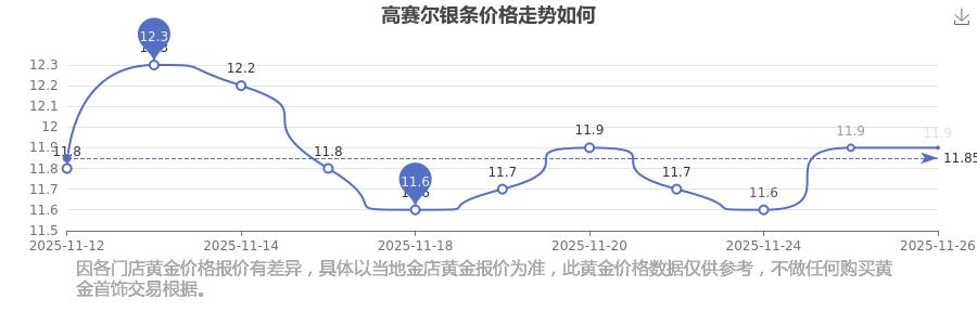 高賽爾 銀條價(jià)格在今日更新至11.9元/克。