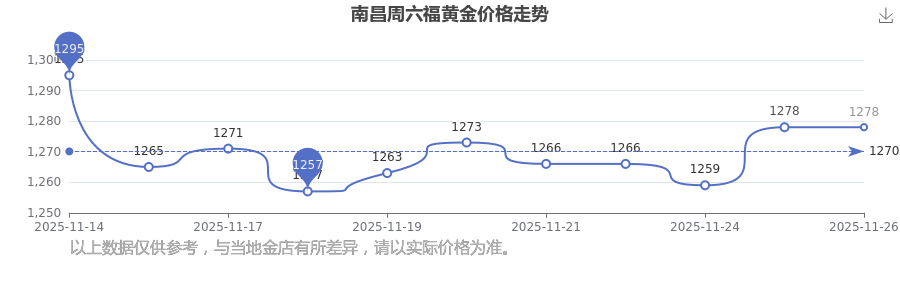 1278.0元/克,這是南昌周六福于 2025年11月26日所定的黃金價格。
