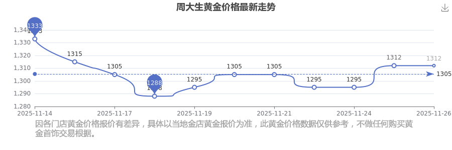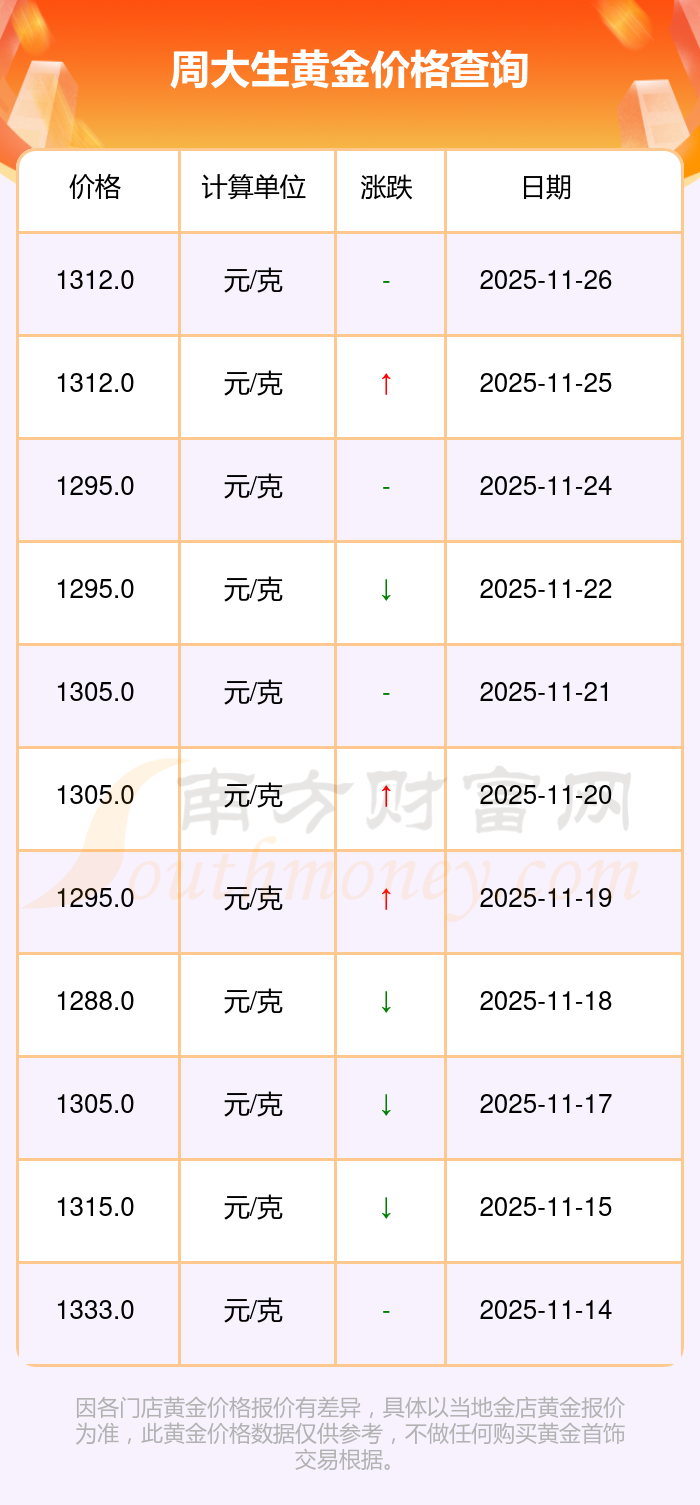 1312.0元/克的價格,是周大生今日 黃金價格的最新行情。