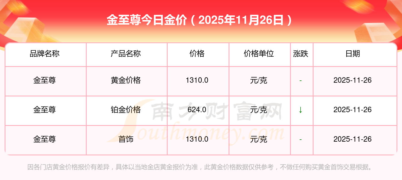 現(xiàn)在金至尊黃金價格是多少錢1克_2025年金至尊今日金價是多少錢一克,最新金至尊查詢,2025年11月26日金至尊首飾現(xiàn)在每克多少錢?最新金至尊首飾報價公布,一起來看看吧!