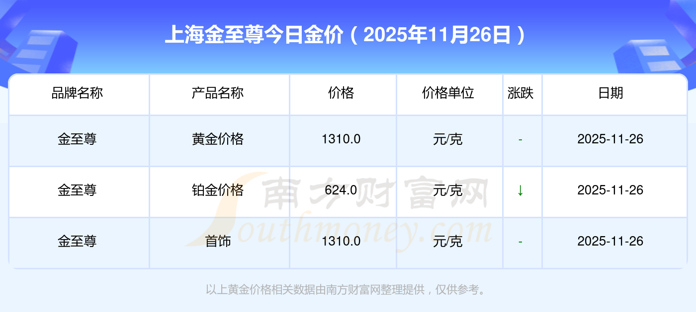 今日黃金價(jià)格查詢_現(xiàn)在金價(jià)黃金一克多少錢(qián),黃金價(jià)格是多少錢(qián)一克?2025年11月26日上海金至尊黃金按克計(jì)價(jià),現(xiàn)在多少錢(qián)一克?金條金價(jià)(內(nèi)地)1155.0元/克,黃金價(jià)格1312.0元/克,鉑金價(jià)格624.0元/克,黃金價(jià)格1312.0元/克,鉑金價(jià)格624.0元/克,黃金價(jià)格1315.0元/克,鉑金價(jià)格600.0元/克,黃金價(jià)格1258.0元/克,鉑金價(jià)格368.0元/克,黃金價(jià)格1149.0元/克,鉑金價(jià)格489.0元/克。