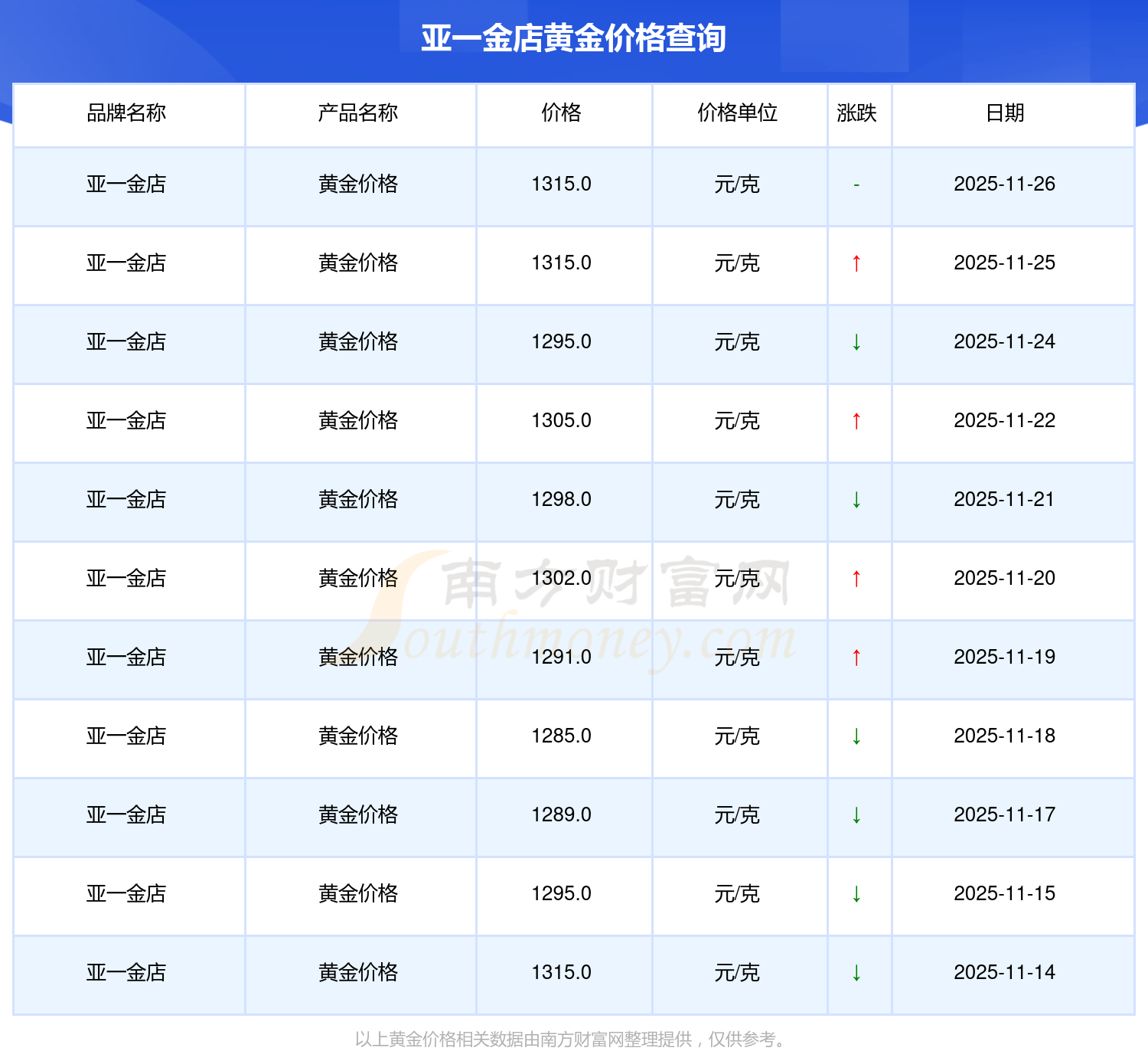 今天黃金價(jià)格幾何?現(xiàn)在每克黃金值多少錢(qián)?黃金每一克的價(jià)錢(qián)一般是多少呀?今日亞一金店所公布的 黃金價(jià)格最新價(jià)格為1315.0元/克。