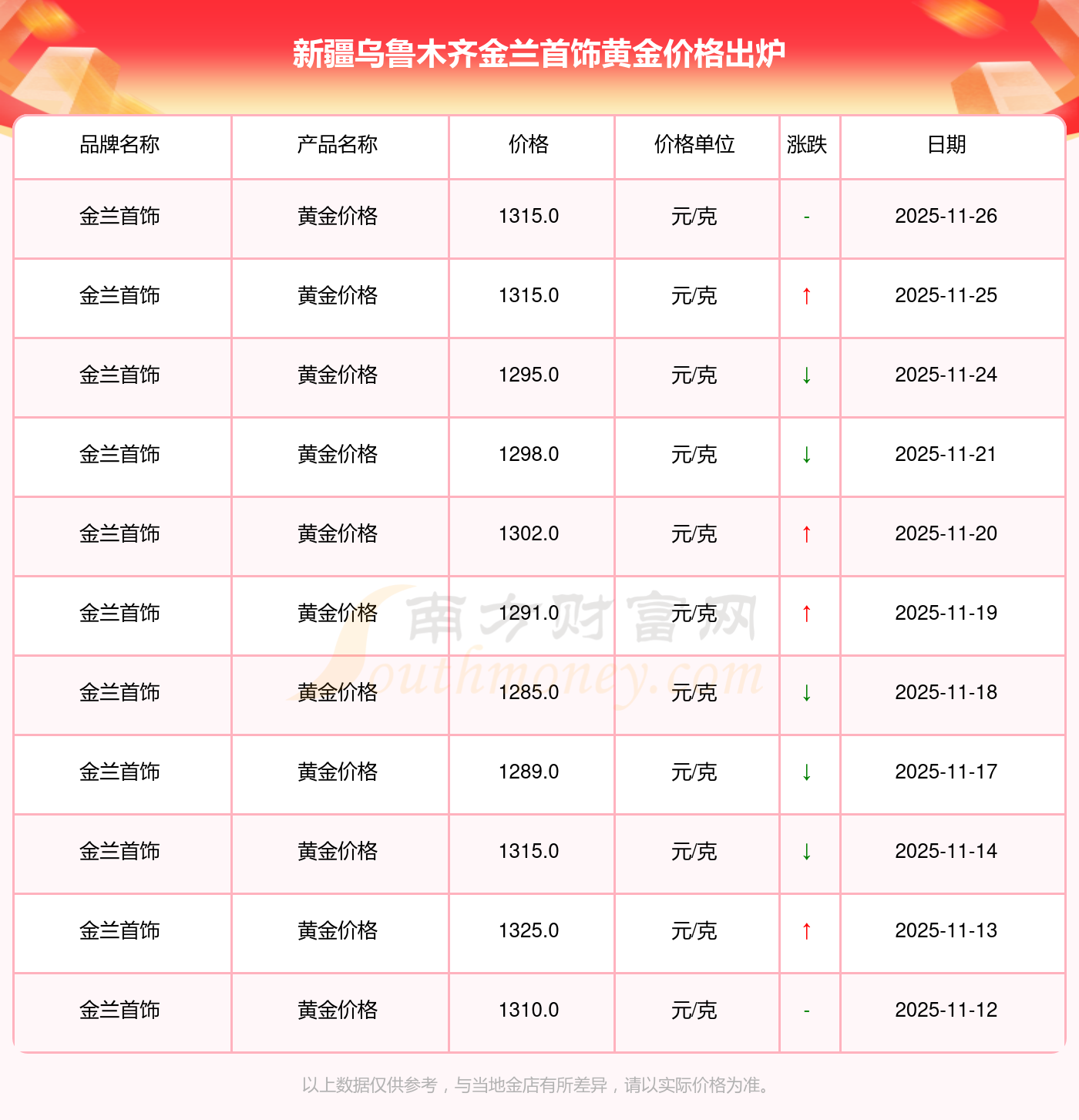 2025年11月26日各大金店黃金價(jià)格最新價(jià)格:周生生1155.0元/克,潮宏基1312.0元/克,潮宏基624.0元/克,周大生1312.0元/克,周大生624.0元/克,亞一金店1315.0元/克,亞一金店600.0元/克,寶慶銀樓1258.0元/克,寶慶銀樓368.0元/克,太陽(yáng)金店1149.0元/克,太陽(yáng)金店489.0元/克。