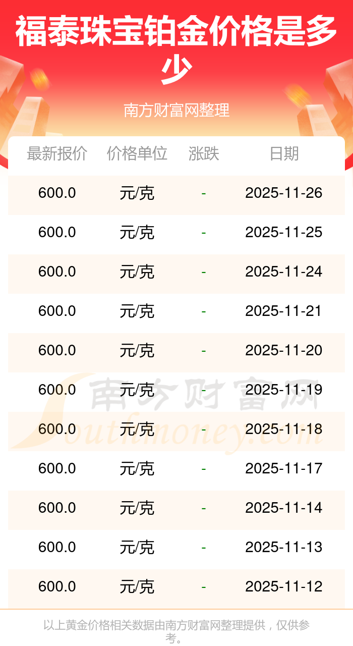 600.0元/克成為福泰珠寶今日 鉑金價格的最新交易的價格。
