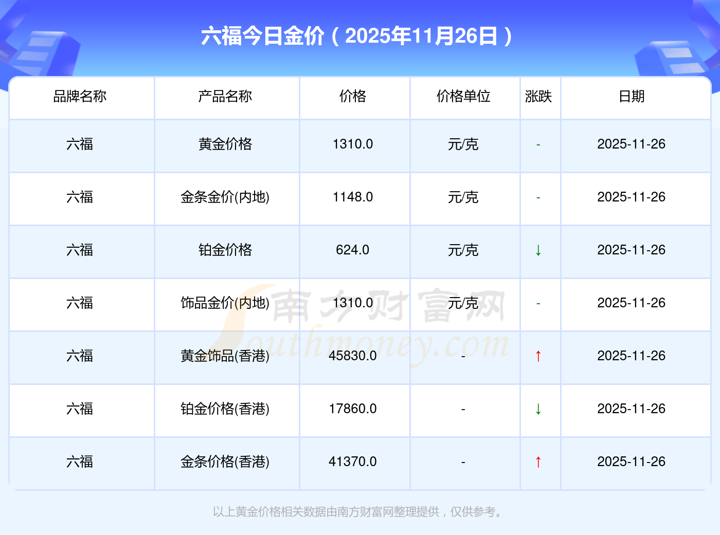 六福今天的黃金價(jià)值幾何?詳情如下: