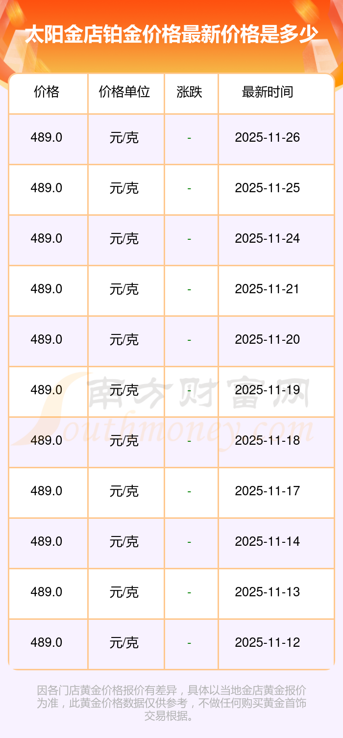489.0元/克成為太陽金店今日 鉑金價(jià)格的最新交易的價(jià)格。