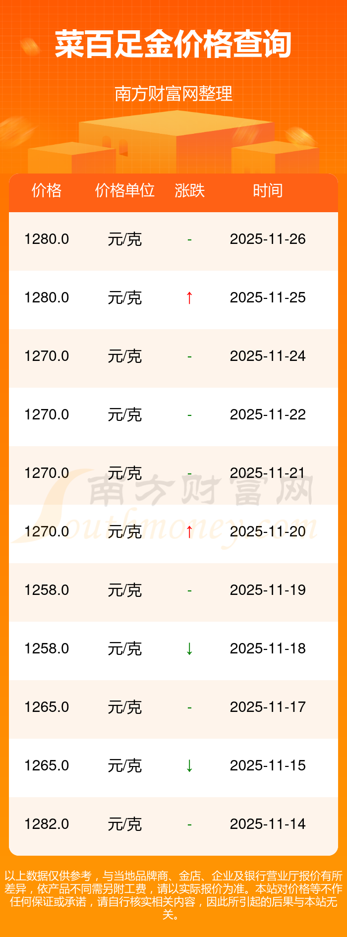 1280.0元/克的價格,是菜百今日 足金價格的最新行情。