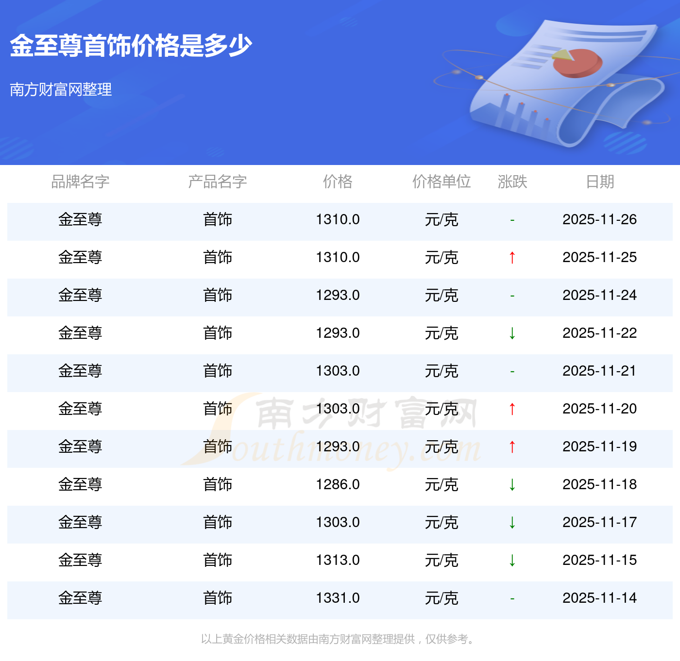金至尊今日首飾的最新市場行情價(jià)為1310.0元/克。