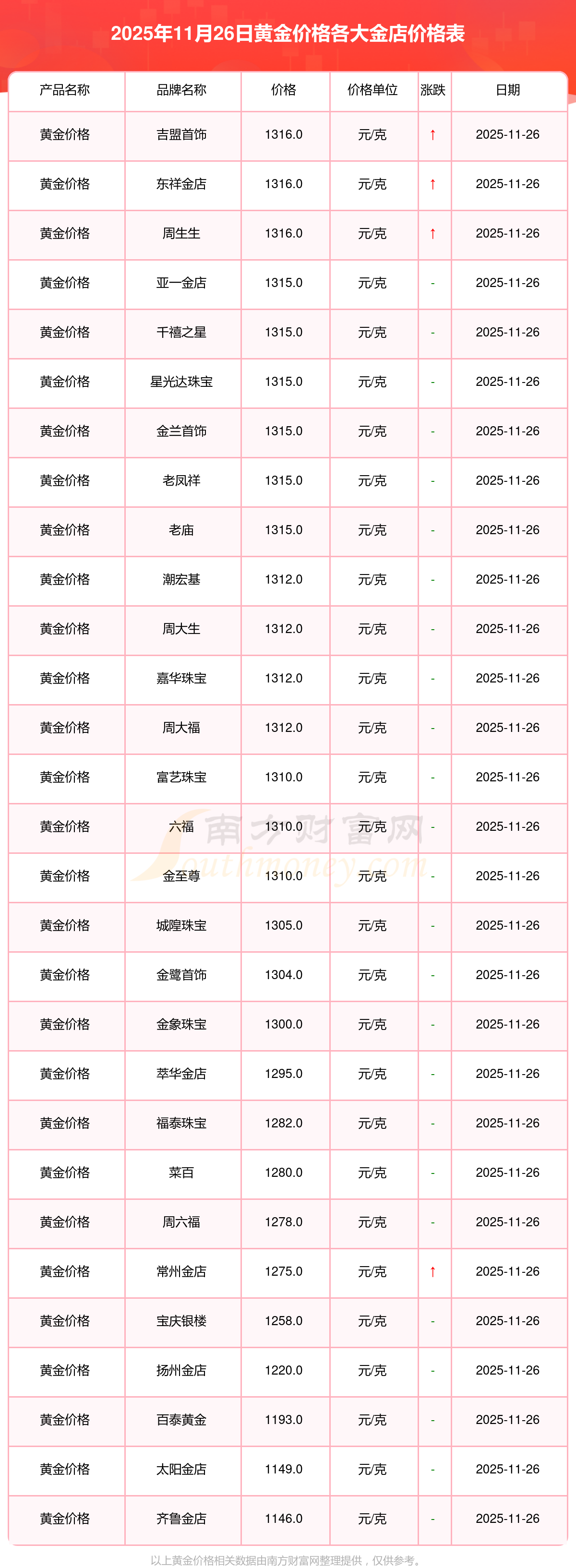 現(xiàn)在黃金價格多少錢一克_2025年11月26日各金店黃金價格表最新,一起來看看吧!