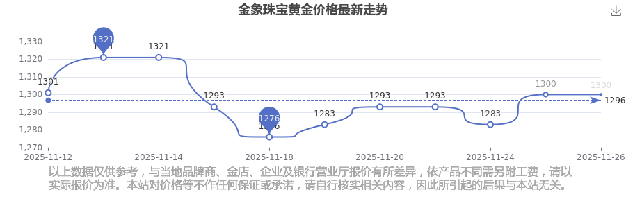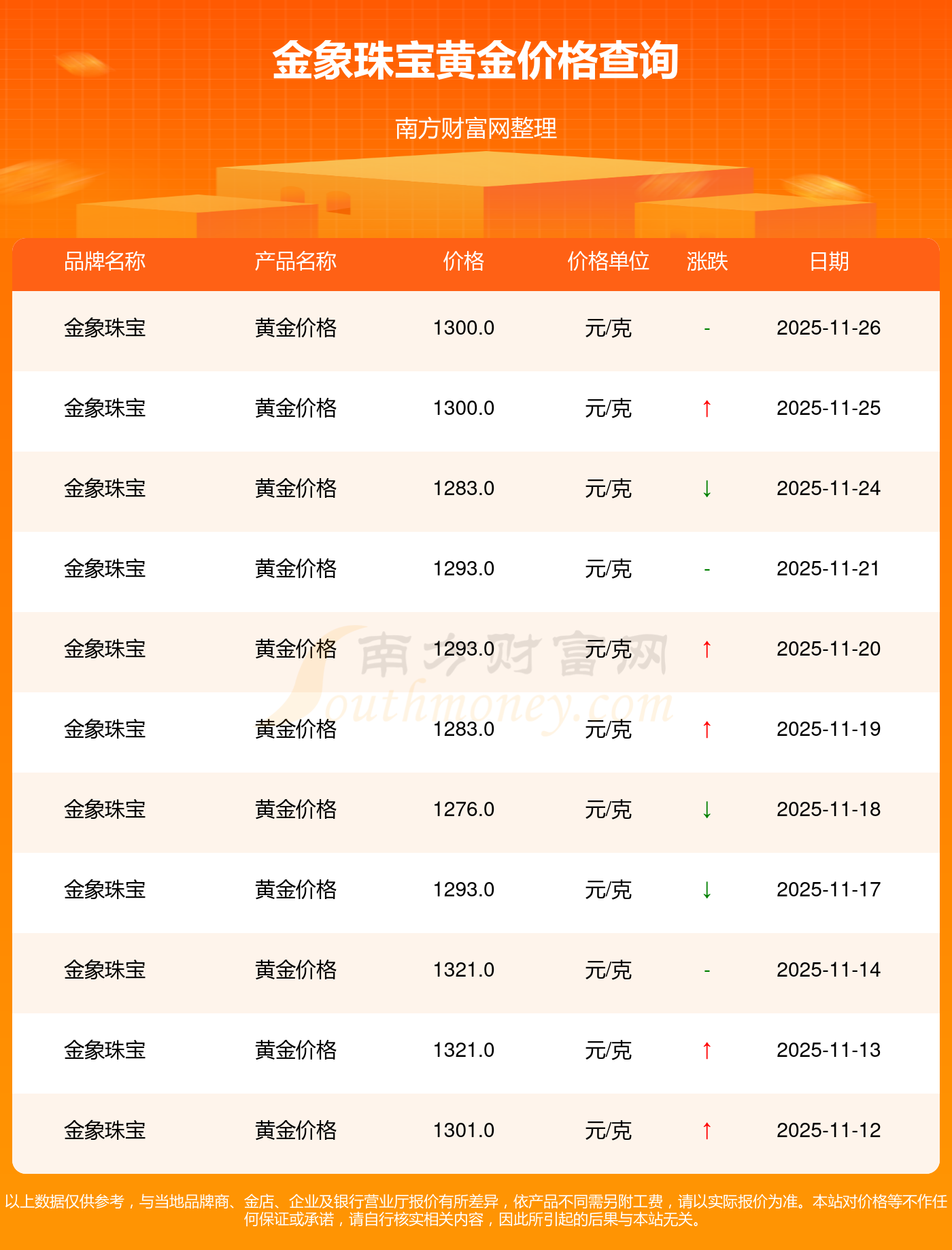 金象珠寶今日黃金價(jià)格的最新市場(chǎng)行情價(jià)為1300.0元/克。