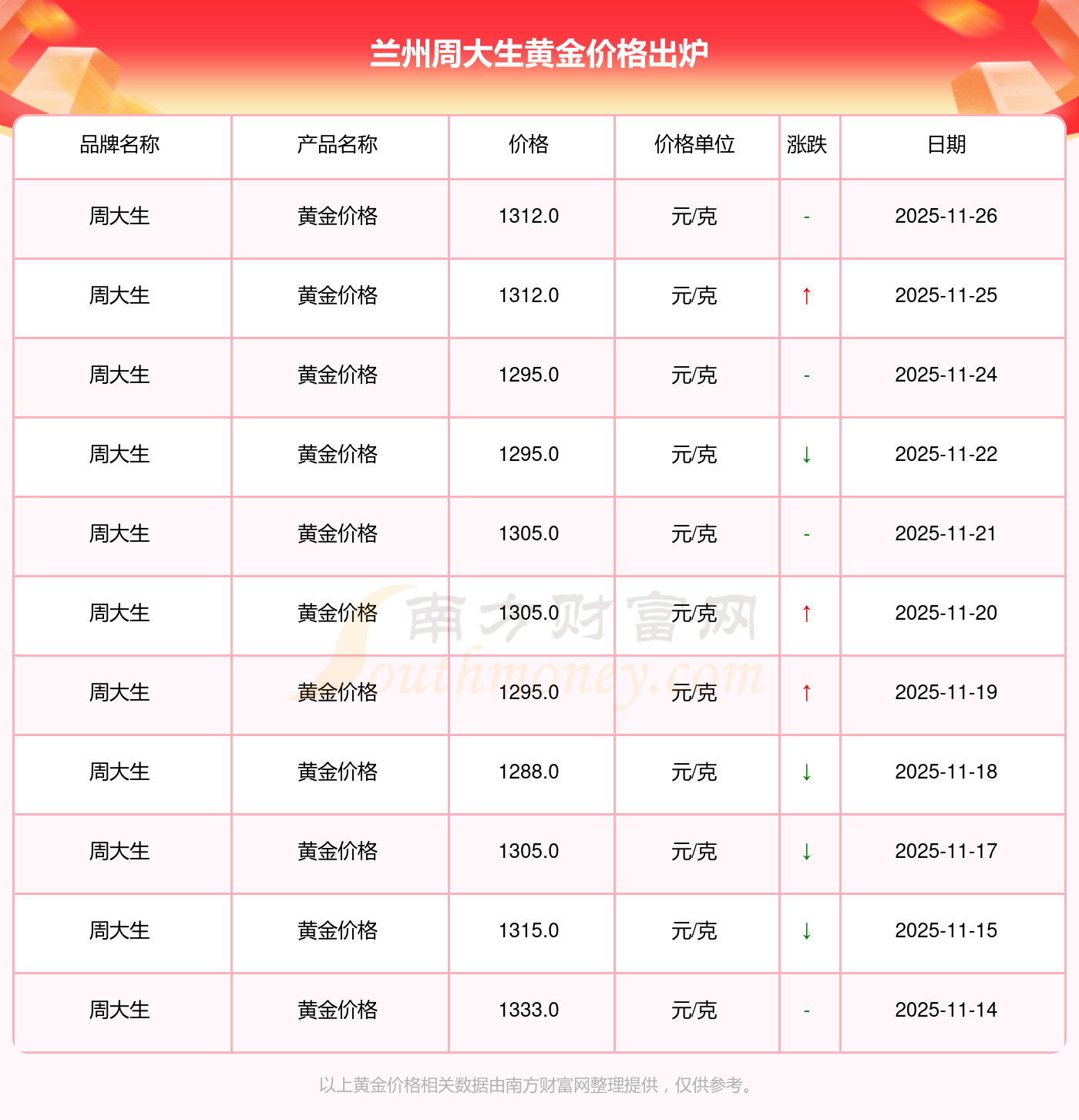 今日蘭州周大生黃金價(jià)格的價(jià)格為1312.0元/克。