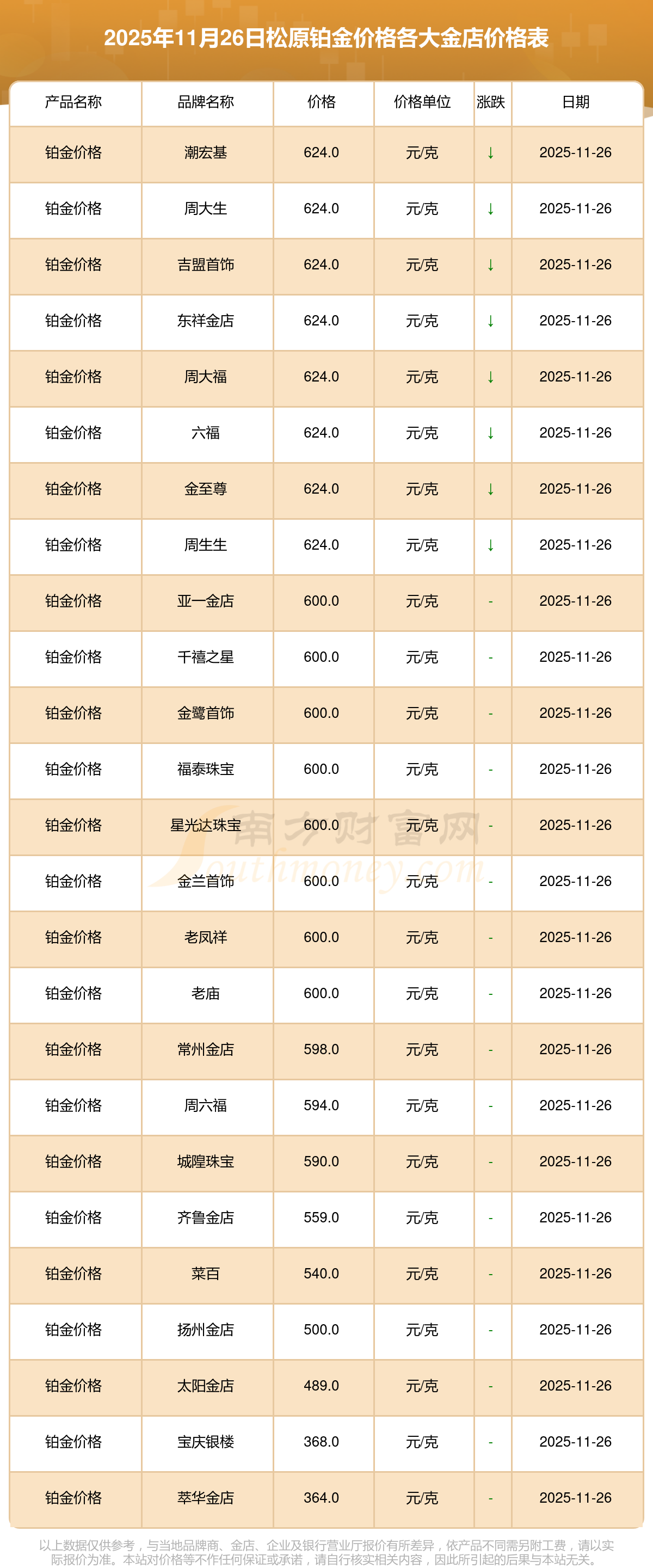 飾品一克便宜幾十塊了嘛?2025年11月26日松原各金店鉑金價格最新一覽表