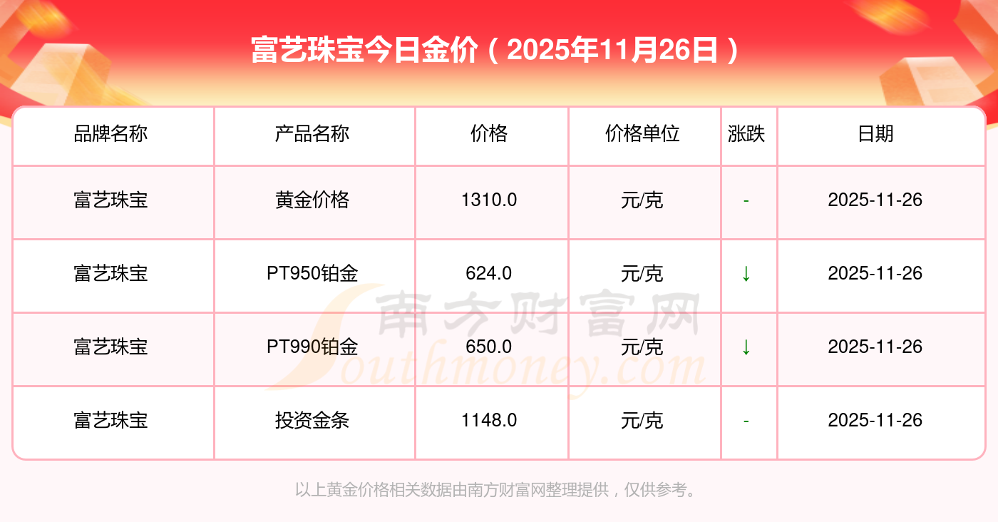 富藝珠寶今天的黃金價值幾何?詳情如下:
