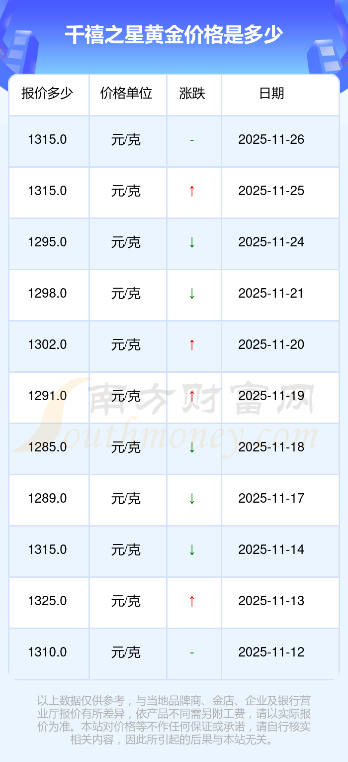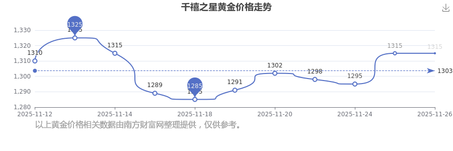 今日黃金價格查詢_現(xiàn)在金價黃金一克多少錢,黃金價格是多少錢一克?作為一種優(yōu)良的導(dǎo)電導(dǎo)熱材料,黃金有良好的導(dǎo)熱特性。因為化學(xué)穩(wěn)定性高、抗氧化性強(qiáng),可制作高精度電子元件,所以在電子工業(yè)的特殊電路設(shè)計中經(jīng)常用到它。1315.0元/克成為千禧之星今日 黃金價格的最新交易的價格。