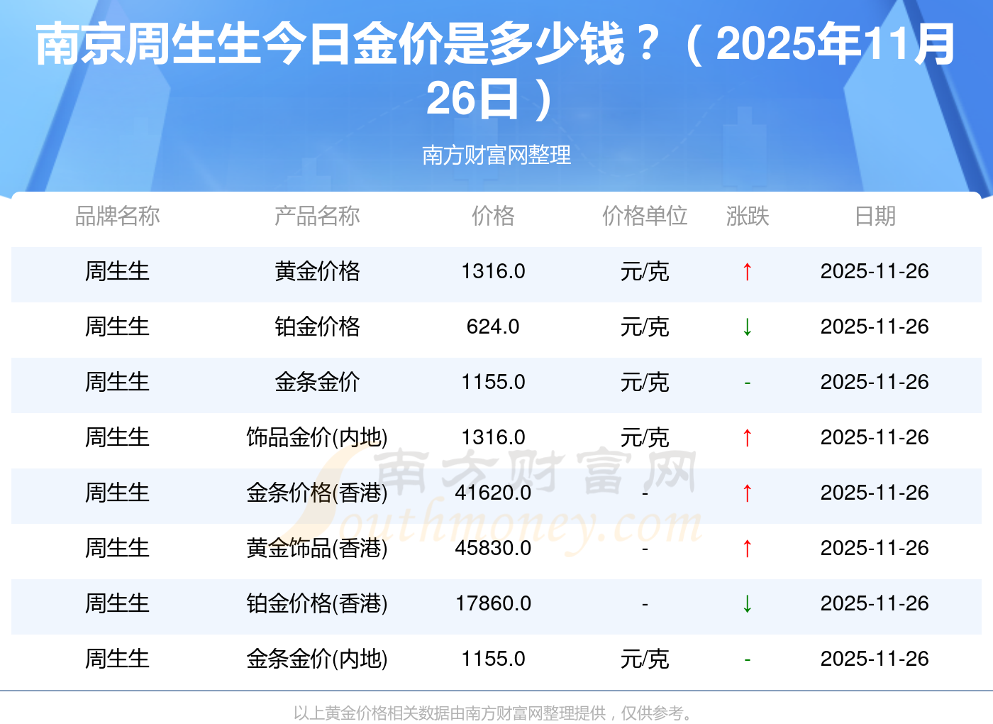 以上數(shù)據(jù)僅供參考,與當(dāng)?shù)亟鸬暧兴町,請以?shí)際價(jià)格為準(zhǔn)。