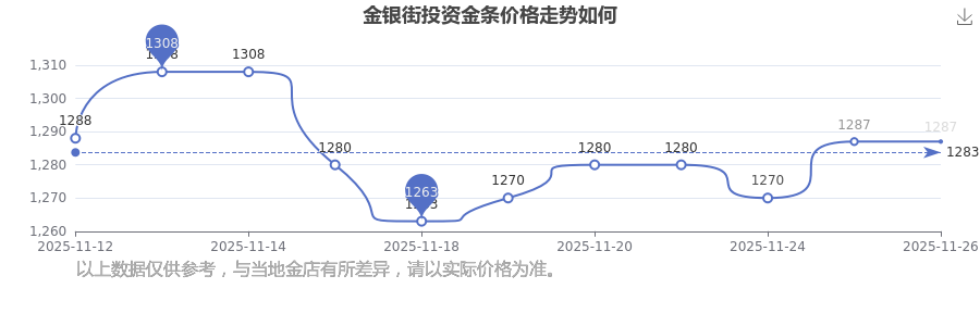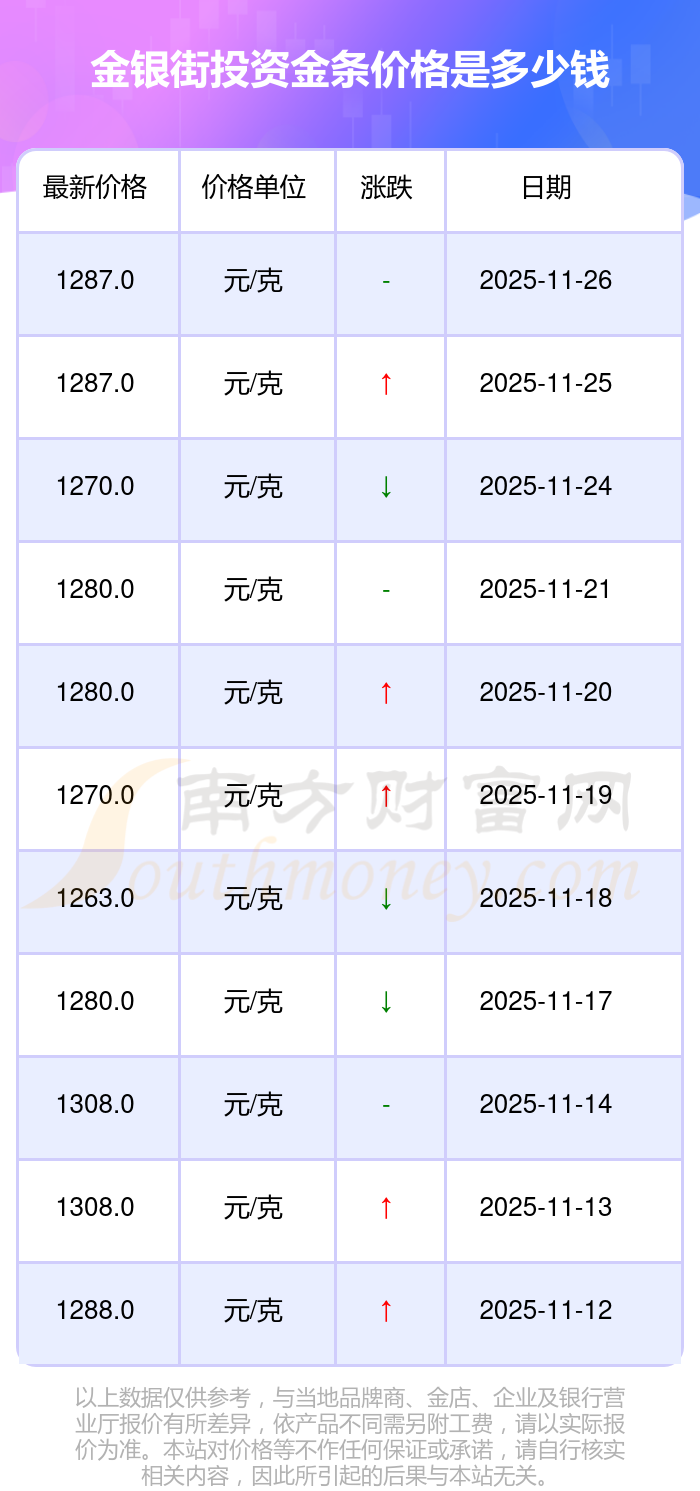 金銀街 投資金條在今日的最新價格顯示為1287.0元/克。