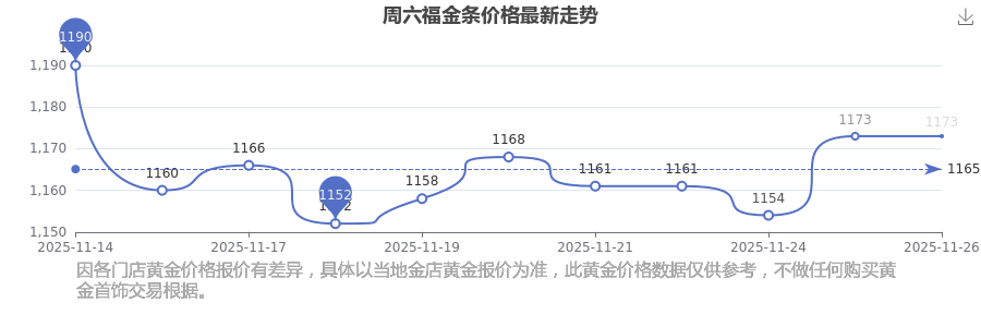 今日周六福 金條價(jià)格的最新定價(jià)為1173.0元/克。