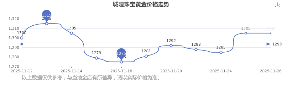 今日城隍珠寶黃金價(jià)格是1305.0元/克。