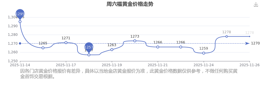 今日黃金價格具體是多少?現(xiàn)在一克黃金賣多少錢?黃金每一克的價格通常在多少數(shù)值左右?周六福 黃金價格在今日的最新價格顯示為1278.0元/克。