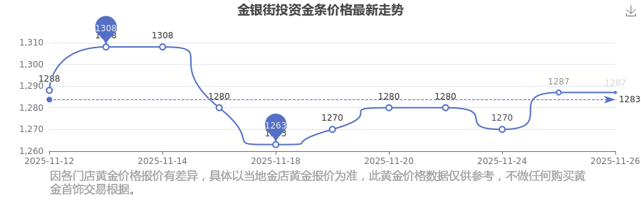 2025年11月27日金銀街投資金條價(jià)格查詢:1287.0元/克。