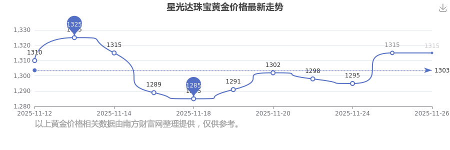 今日星光達(dá)珠寶 黃金價(jià)格的最新定價(jià)為1315.0元/克。