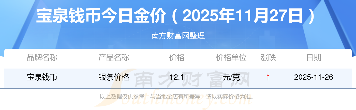 現(xiàn)在寶泉錢幣黃金價格是多少錢1克_2025年寶泉錢幣今日金價是多少錢一克,最新寶泉錢幣查詢,2025年11月27日寶泉錢幣銀條價格現(xiàn)在每克多少錢?最新寶泉錢幣銀條價格報價公布,一起來看看吧!