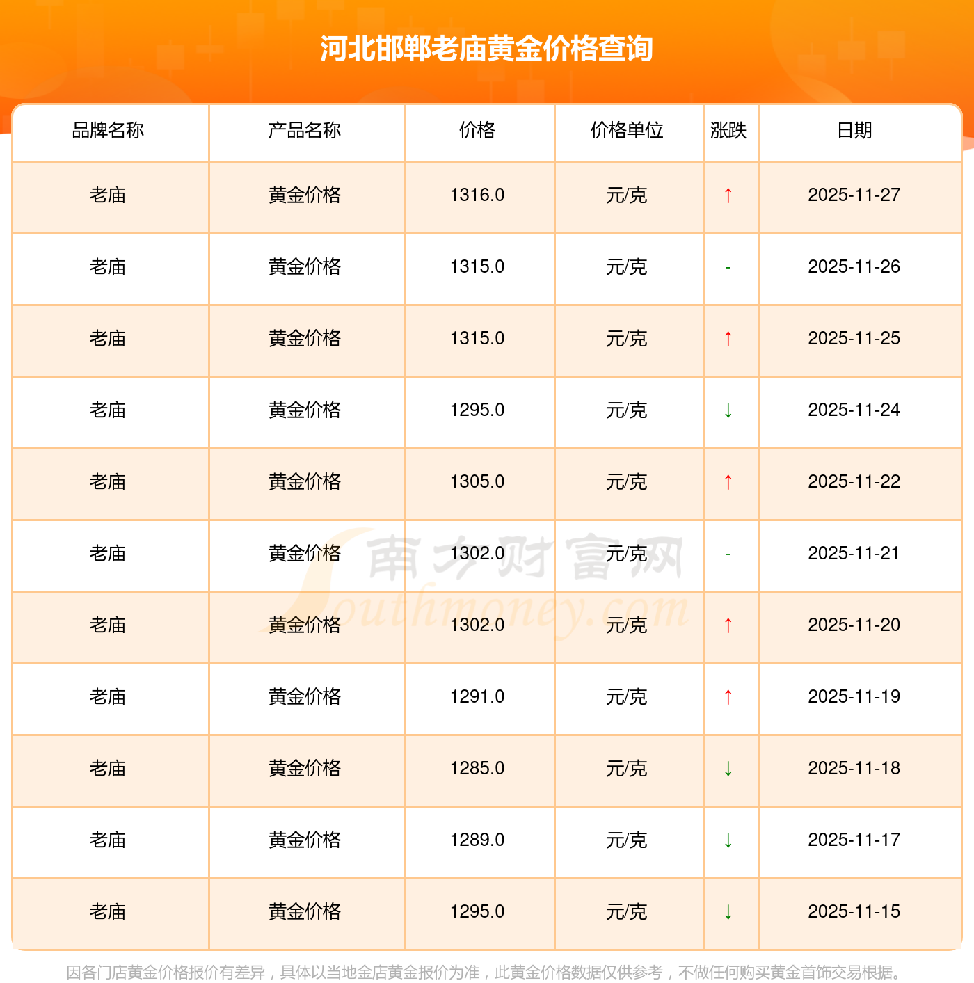 今日黃金市場(chǎng)中,每克黃金定價(jià)是多少,今日黃金零售價(jià)格列表,今日河北邯鄲老廟黃金價(jià)格圖表