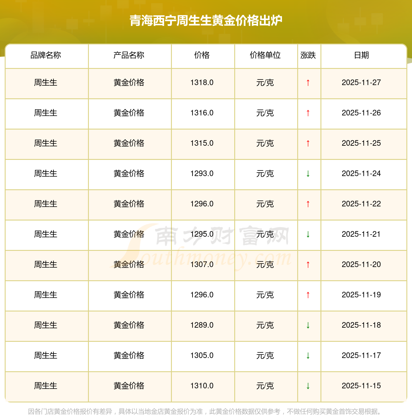 2025年11月27日周大福、周大福、老鳳祥、老鳳祥、六福、六福、六福、菜百、菜百、老廟、老廟等各大金店品牌黃金價格最新價格如下:周大福黃金價格1312.0元/克,周大福鉑金價格652.0元/克,老鳳祥黃金價格1316.0元/克,老鳳祥鉑金價格600.0元/克,六福黃金價格1310.0元/克,六福鉑金價格652.0元/克,六福鉑金價格(香港)18700.0,菜百黃金價格1280.0元/克,菜百鉑金價格540.0元/克,老廟黃金價格1316.0元/克,老廟鉑金價格600.0元/克。