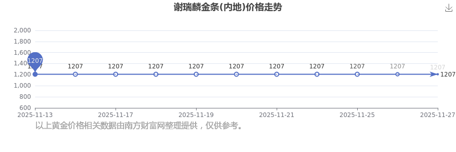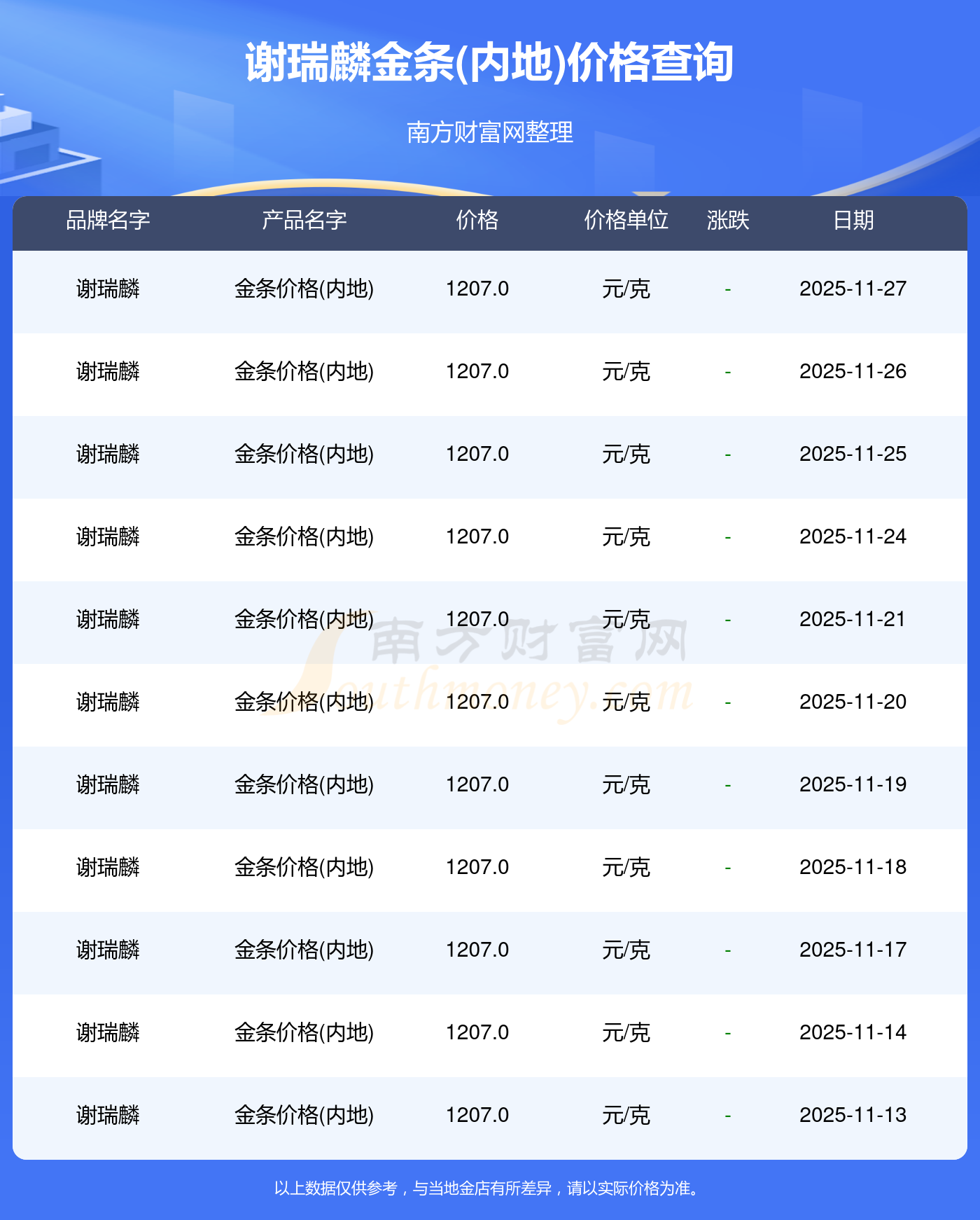 1207.0元/克的價格,是謝瑞麟今日 金條價格(內(nèi)地)的最新行情。