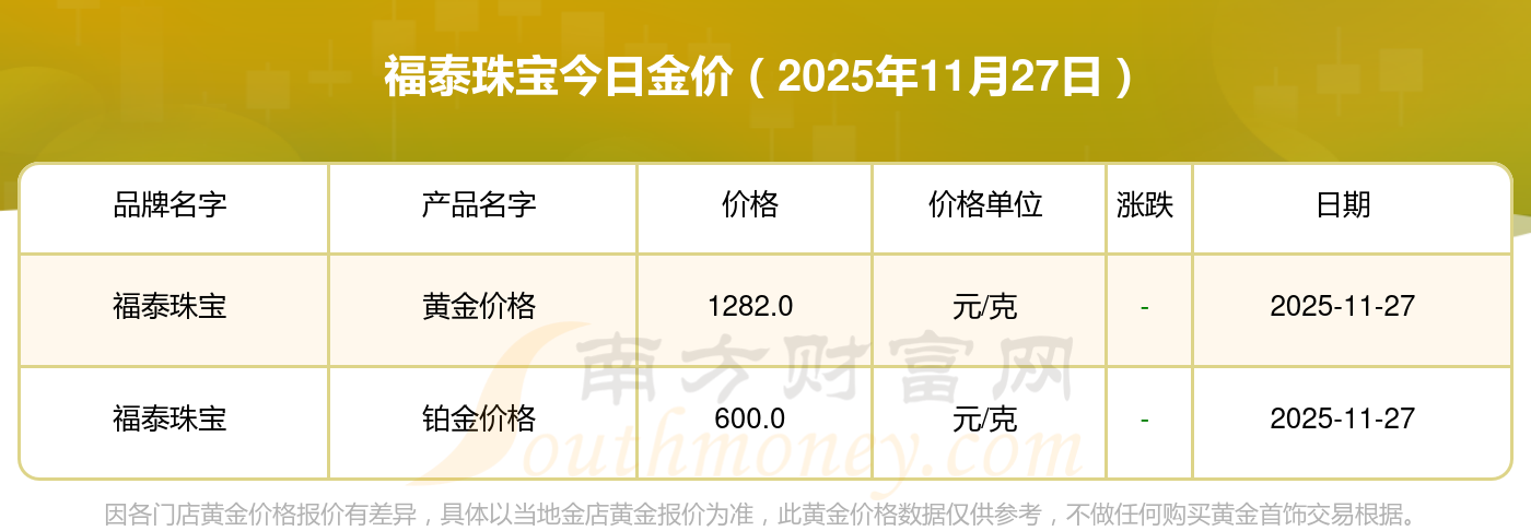 福泰珠寶今天的黃金價(jià)值幾何?詳情如下: