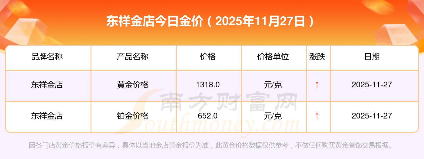2025年11月27日東祥金店今日價(jià)格:黃金價(jià)格1312.0元/克,鉑金價(jià)格652.0元/克,黃金價(jià)格1316.0元/克,鉑金價(jià)格600.0元/克,黃金價(jià)格1310.0元/克,鉑金價(jià)格652.0元/克,鉑金價(jià)格(香港)18700.0,黃金價(jià)格1280.0元/克,鉑金價(jià)格540.0元/克,黃金價(jià)格1316.0元/克,鉑金價(jià)格600.0元/克。