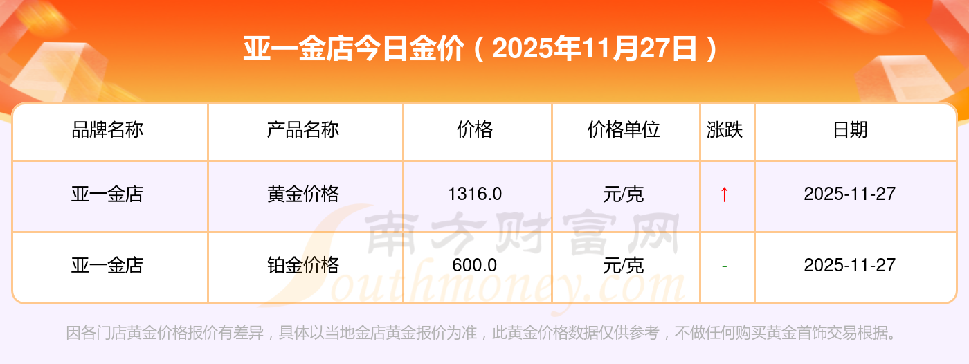 現(xiàn)在金價(jià)黃金多少錢一克,亞一金店黃金今日價(jià)格,一起來(lái)看看吧!